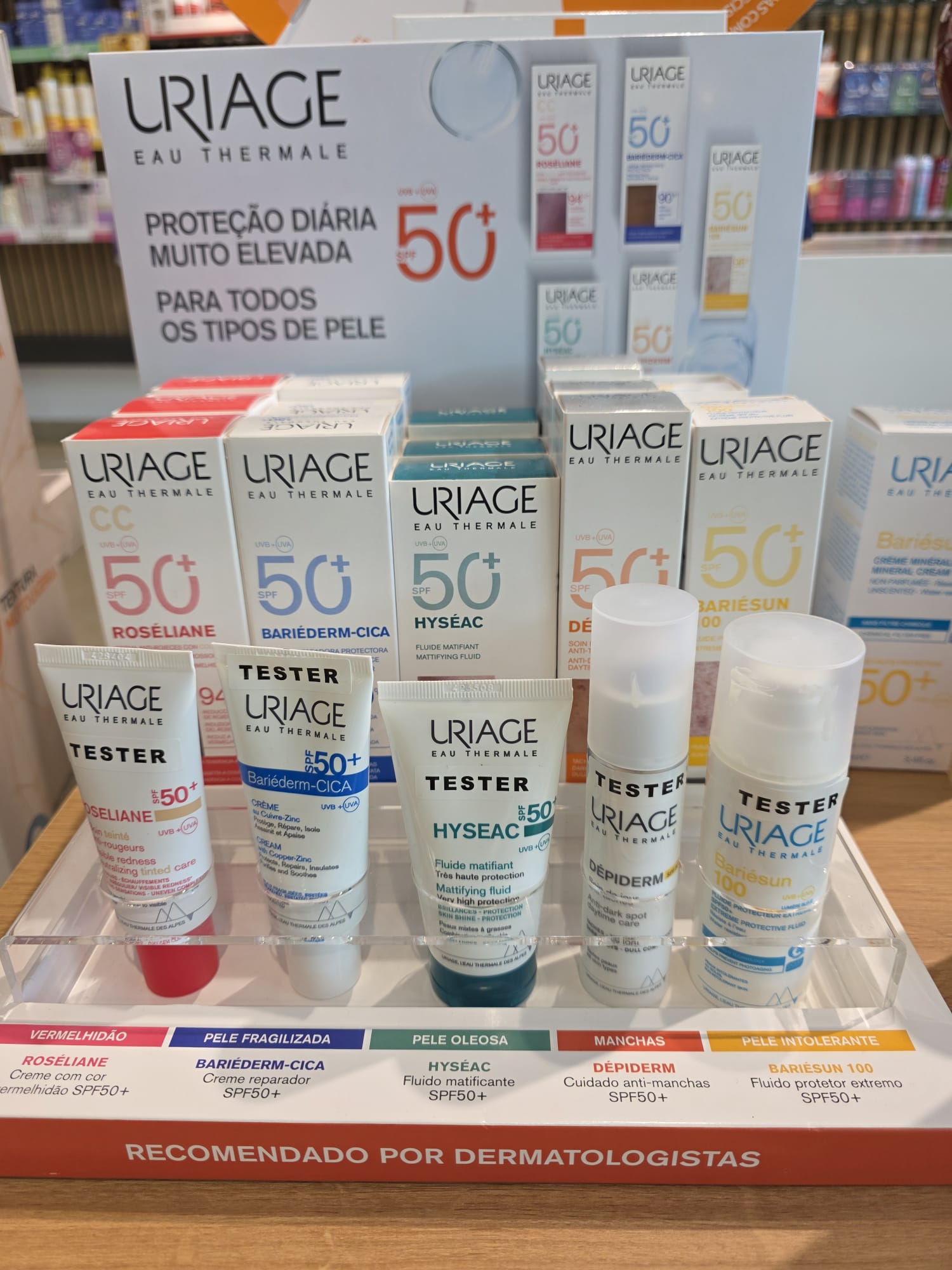 Linha Hyseac: Direcionada a peles oleosas e acneicas, com produtos que controlam o brilho e protegem sem obstruir os poros.
